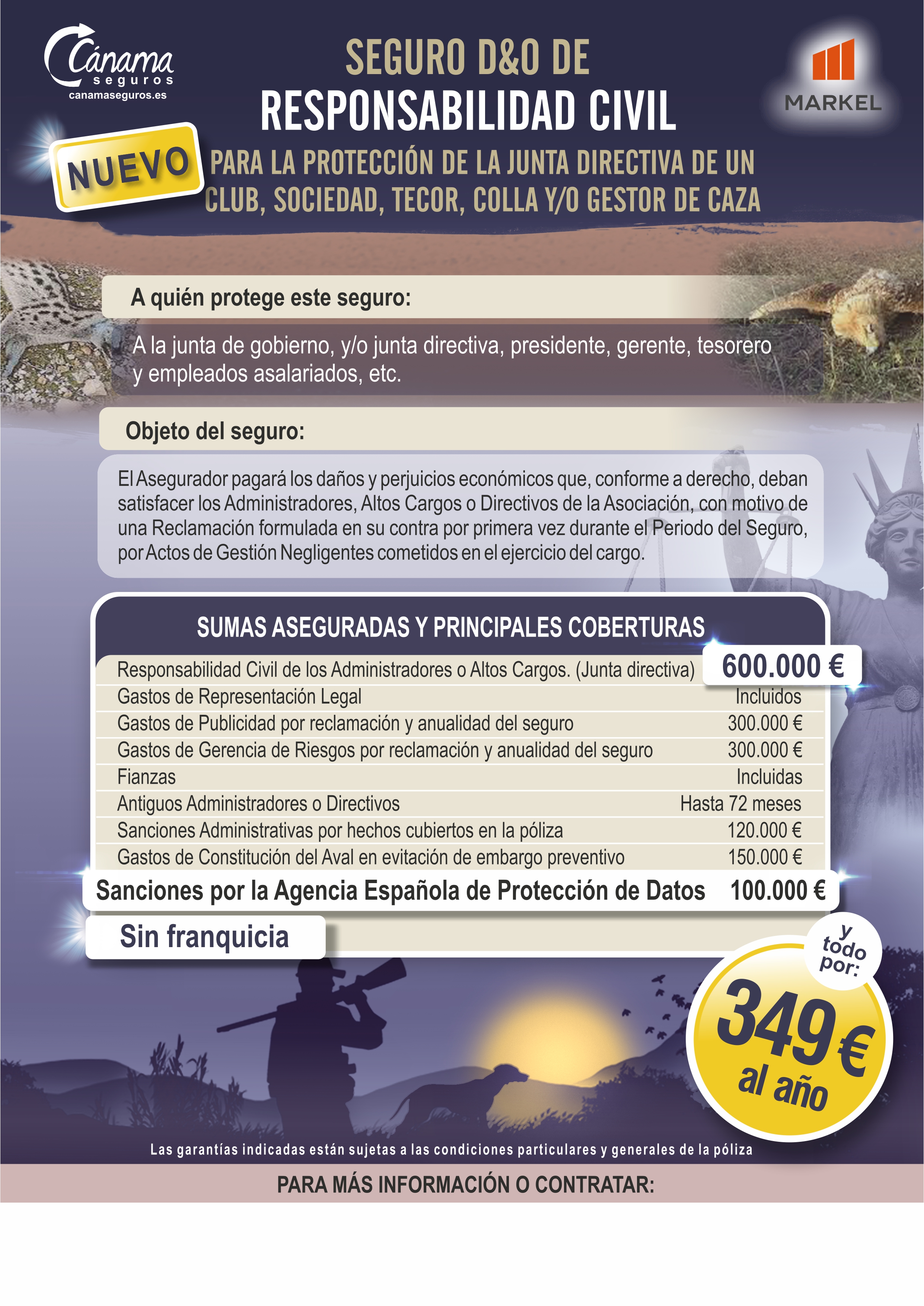 Contacta con nosotros o calcula tu presupuesto en www.canamaseguros.es y recibe asesoramiento especializado sobre el Seguro D&O para Juntas Directivas de Caza.